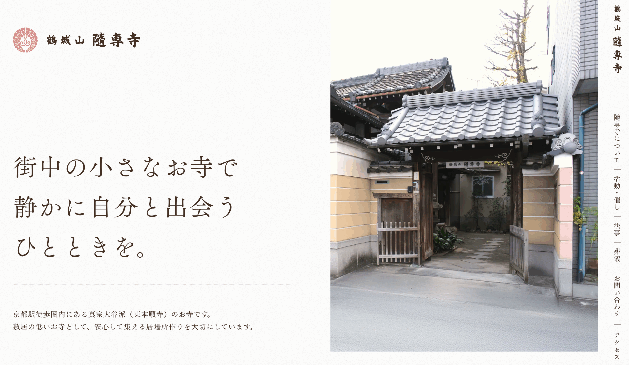 京都府京都市 真宗大谷派 随専寺さんのWebサイトを制作させていただきました。