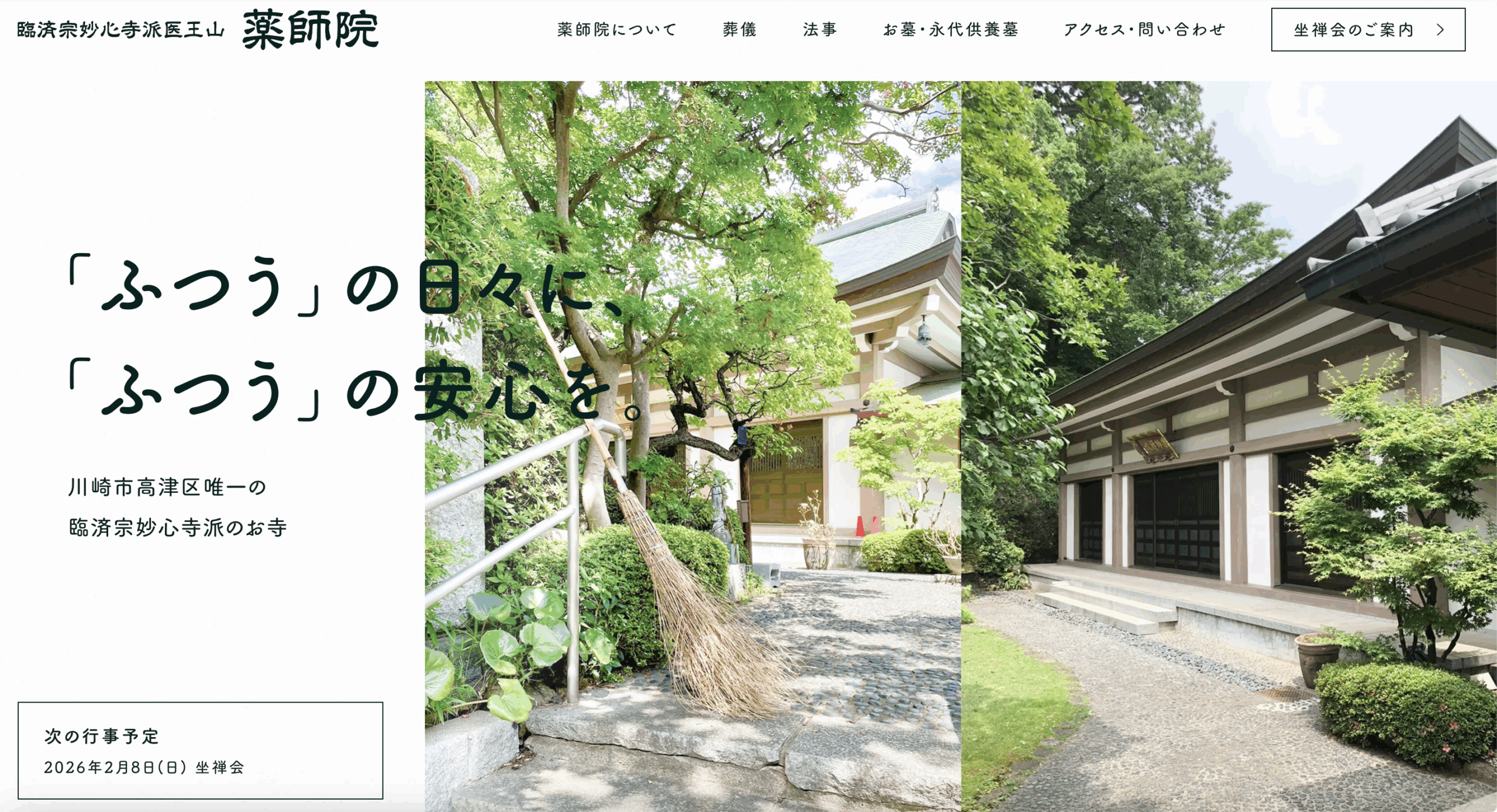 神奈川県川崎市にある臨済宗妙心寺派 薬師院様のWebサイトを制作させていただきました。